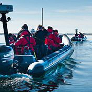 omgiven av vatten ses självfallet bäst från just vattnet. Denna tur går från