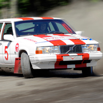med en rallyförare i tävlingstempo.